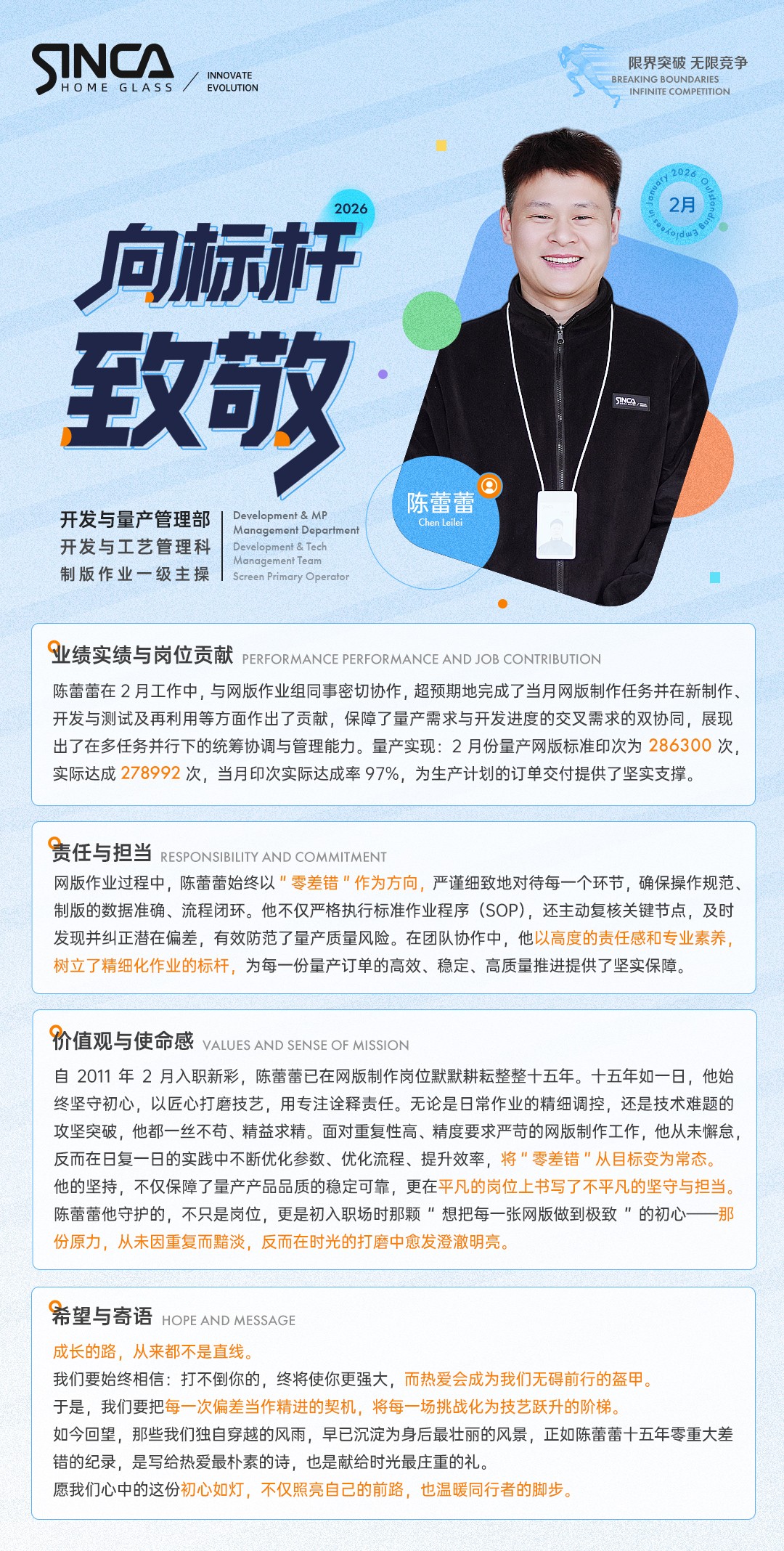 向标杆致敬——2026年02月优秀员工陈蕾蕾