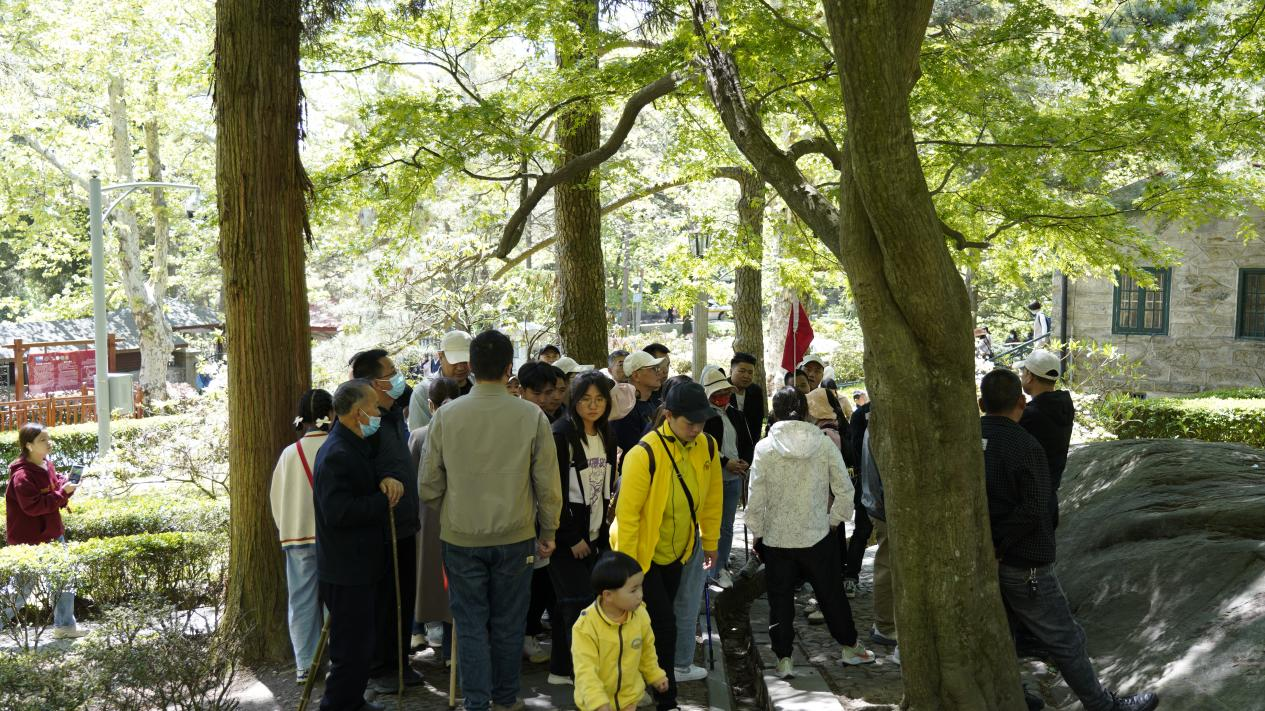 大家在听导游讲解美庐的历史背景