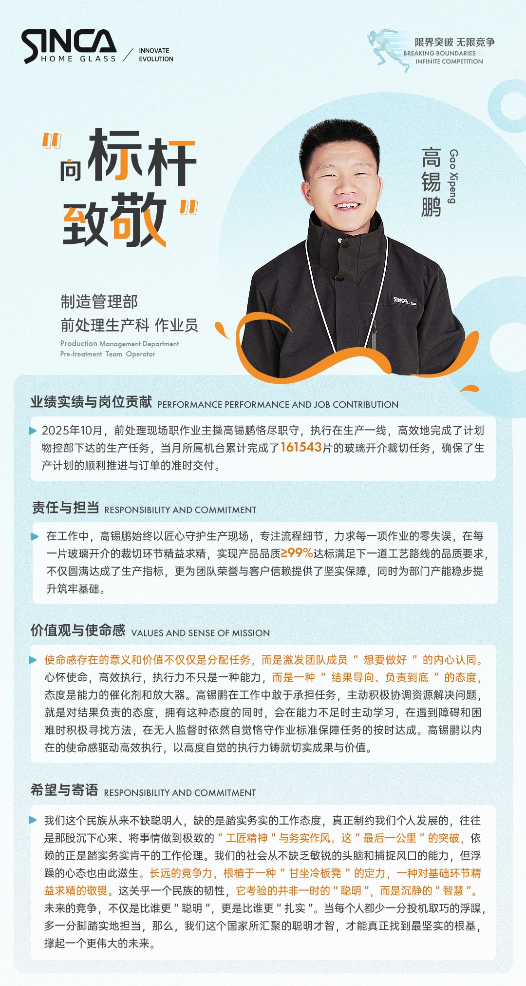 向标杆致敬——2025年10月优秀员工高锡鹏